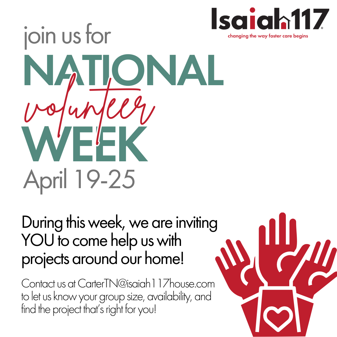 Join us for National Volunteer Week, April 19–25! We’re inviting groups to serve with us -- completing meaningful projects in our home that directly support the children we care for.